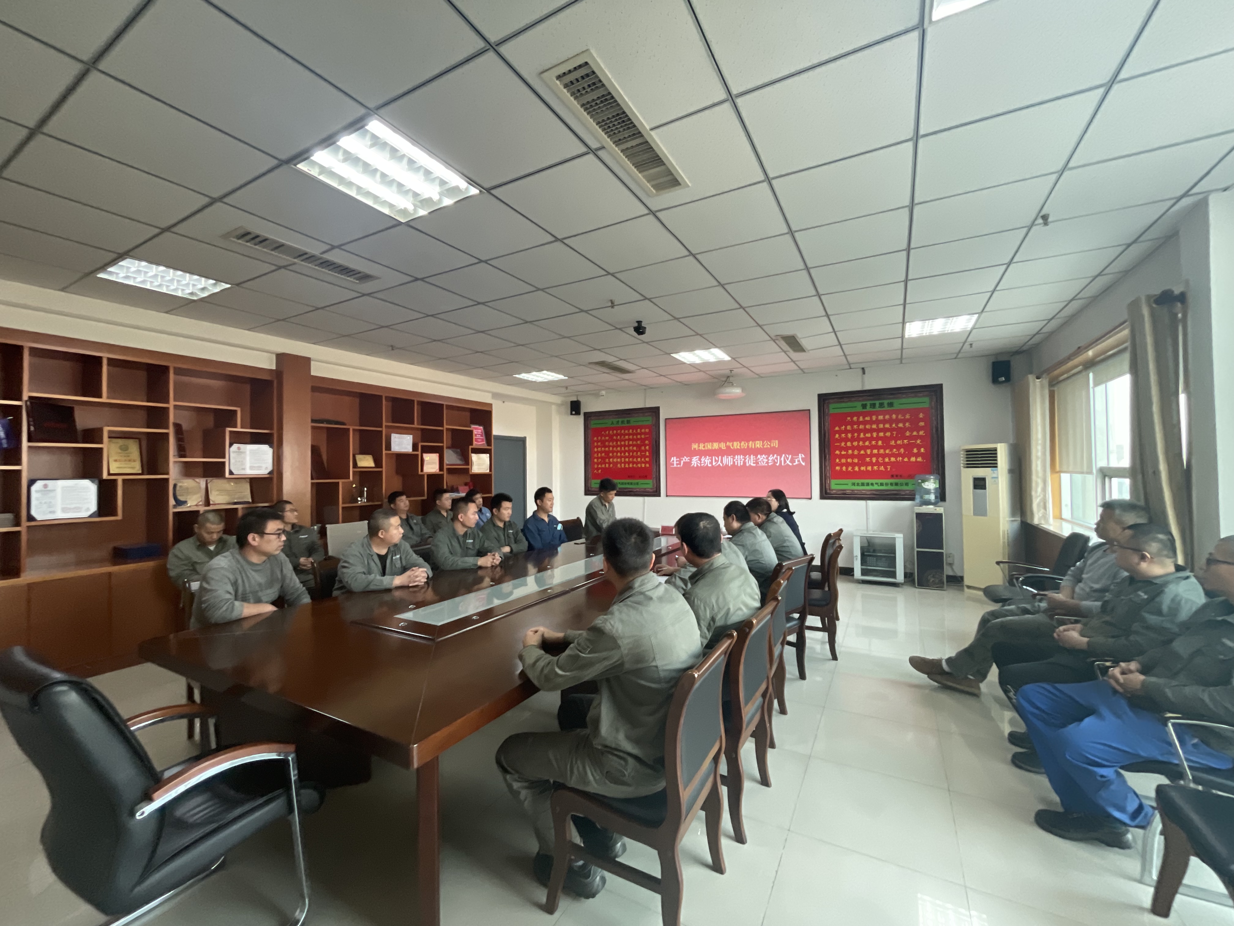 主機(jī)廠機(jī)加車間主任王立輝宣讀《河北國(guó)源電氣股份有限公司師徒協(xié)議》。
